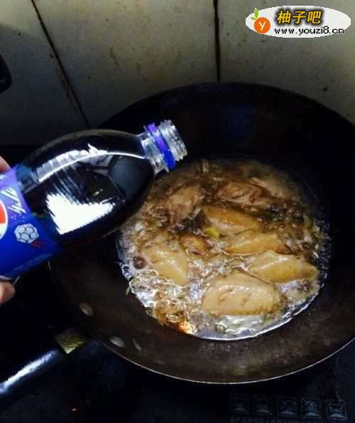 7加入适量可乐,添入适量水莫过鸡翅中。