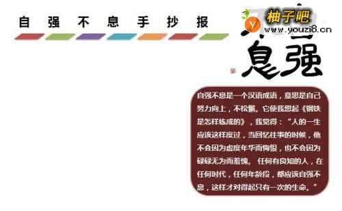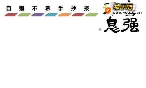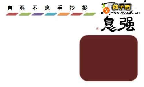 4在【自强不息手抄报】标题的下方右侧处,在框内写上字,如下图所示。