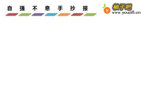 首先,用彩笔在白纸上,画出含有立体感小长方形框架并涂上颜色,在白纸的顶部靠左写上字:【自强不息手抄报】的标题,如下图所示。