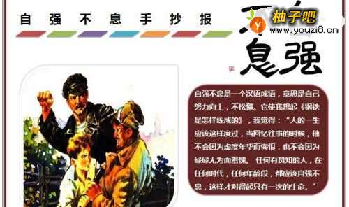 2在【自强不息手抄报】标题的右侧处,画出画面丰富内容,如下图所示。