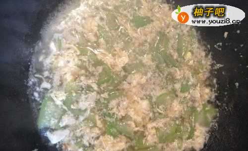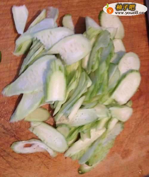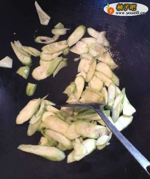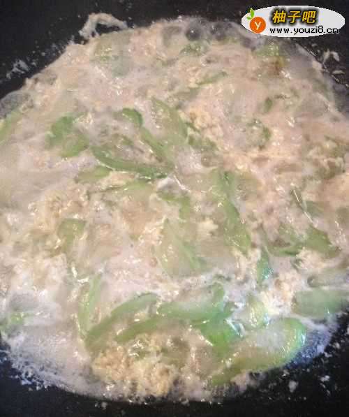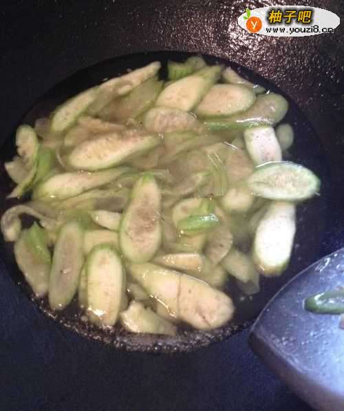 3热锅下油,烧到8成热,放入丝瓜翻炒