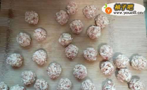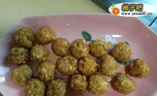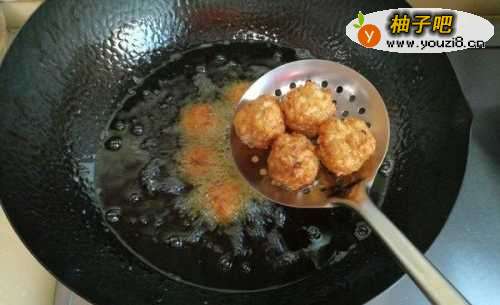9炸至表面变成浅黄色时用漏勺将丸子捞出;