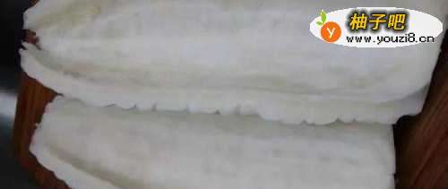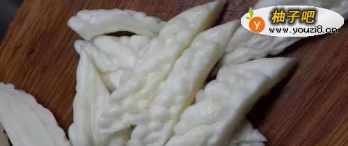 2将苦瓜洗净剖开,去除囊