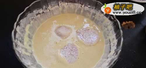 3用处理好的芋头粘上面糊。