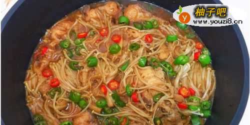 6加入洗干净的金针菇继续盖上盖子煮两分钟