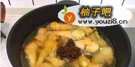 4加入清水没过鱼块,加入豆瓣酱和少量猪油,煮鱼加猪油味道更鲜美,没有可不加