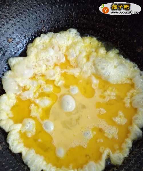 4鸡蛋先用油做好,记住一定要先加点水里,这样鸡蛋嫩滑可口!