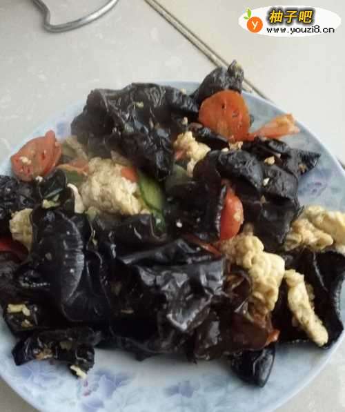 5热锅加油,放入葱段酱油爆锅,放入备好的木耳鸡蛋翻炒,一盘诱人可口的家常菜就做好了,等着朋友点赞吧!