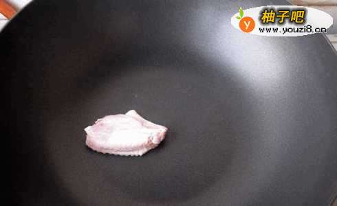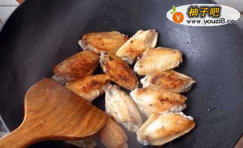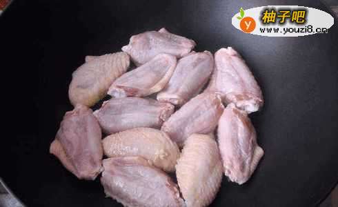 3火上坐锅,锅热后放入鸡翅中,不放油就干煎。