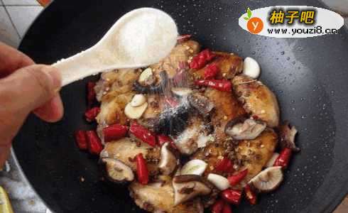 6关火,撒入红辣椒段、花椒。