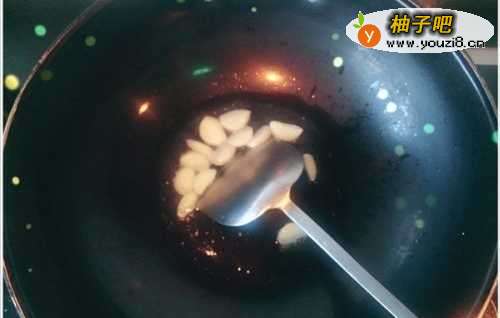 4锅烧热放油,待油温热后放入大蒜瓣爆香。因为我们家孩子喜欢吃西兰花但又不喜欢吃生姜,所以爆香的时候我就没有放入姜丝或者姜末,大家可以根据自己的口味任意添加,喜欢吃辣的还可以加点辣椒丝。