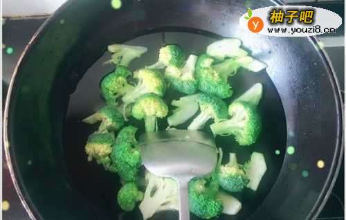 2处理西兰花:西兰花掰好洗净,放入锅内焯水三到五分钟,然后控干水分备用。西兰花焯水后炒起来更容易熟,所以我一般在做西兰花的时候都要焯水,但是焯水的时间又不能太长,否则太烂了也不好吃。