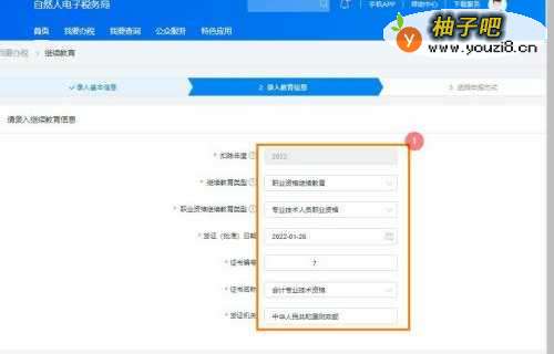 4选择职业资格继续教育类型,输入【从业资格证书信息】,点击【下一步】