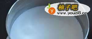 6锅中倒入100ml清水和200ml高达牌椰浆,放入冰糖碎,小火煮至冰糖融化,然后用湿淀粉勾芡即可。