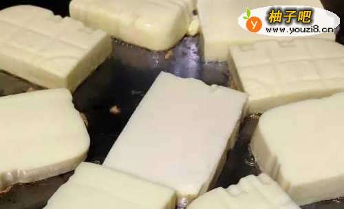 3再倒入1大匙油,将鸡蛋豆腐切片煎至二面金黄色