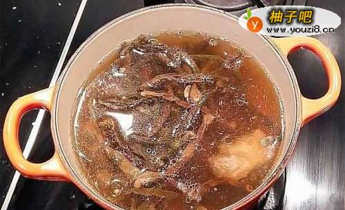 4放入豆干煮滚后,盖上锅盖转小火炖煮约35分钟左右。