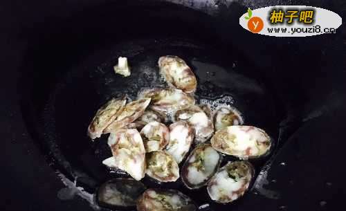 2接着开火,锅烧热之后加入少量油,油热至8成的时候把切好的香肠倒进去,煸炒至香肠呈现透明状的时候即可把蒜末倒进去一起煸香。