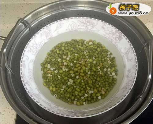 将绿豆提前浸泡4小时。
