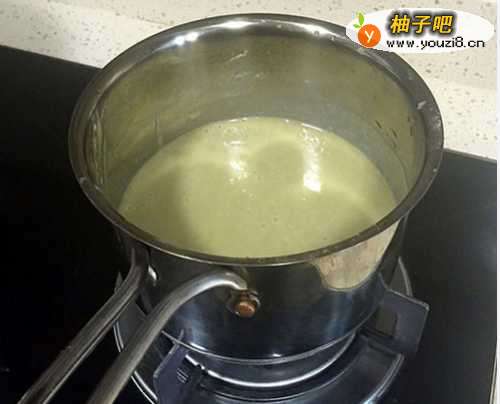 5将过筛后的绿豆糊稍稍熬煮,有些粘稠后关火冷却。