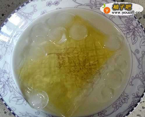 3在蒸绿豆同时将吉利丁片用冰水浸泡