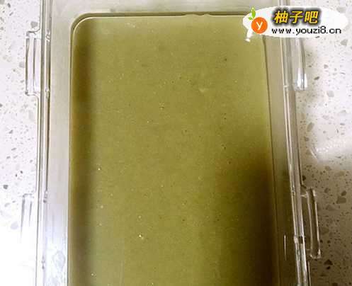 7取一个容器将绿豆糊到处,入冰箱冷藏4小时以上。