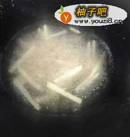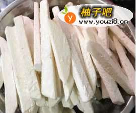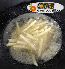 5起锅烧油,当油温达到六七成热的时候,加入薯条炸,炸至表面金黄以后捞出。