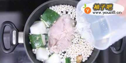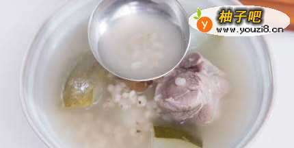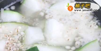 冬瓜含水量高达九成,能消暑利水,是夏天清热食材的好选择,加上具祛湿作用的生熟薏米一起煮汤,功效就更相得益彰