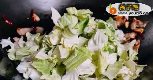 2炒好之后不用盛盘,只把五花肉扒到锅边就可以了