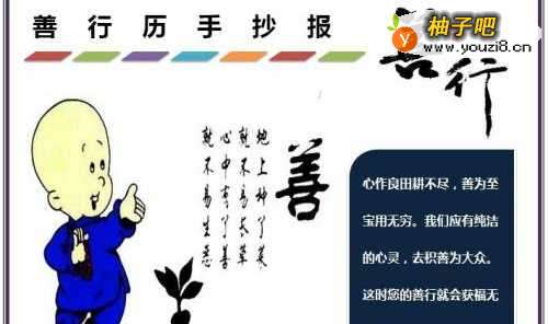 4在【善行历手抄报】标题的下方右侧处,在框内写上字,如下图所示。