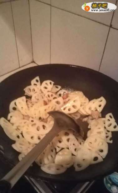 8这样关火就可以了,美味好吃的藕片炒肉就做好了