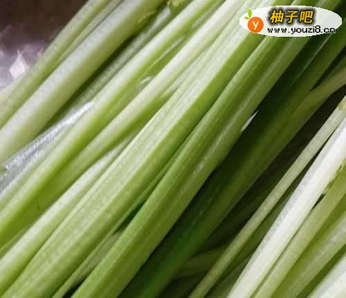 首先把芹菜准备好,去掉根部