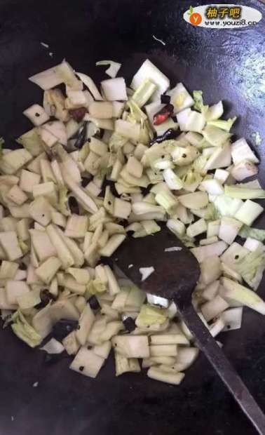 4白菜和辣椒一起倒入锅中。