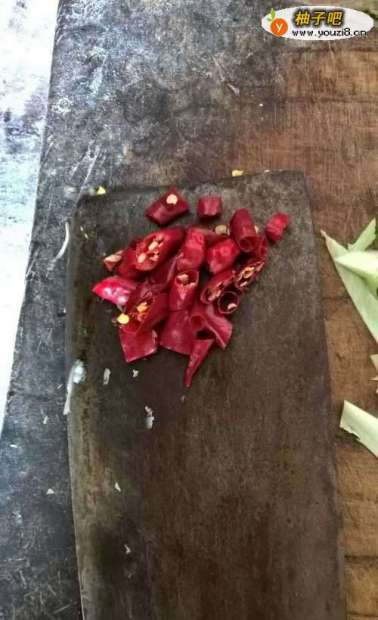 3辣椒要红辣椒切成一段一段的。