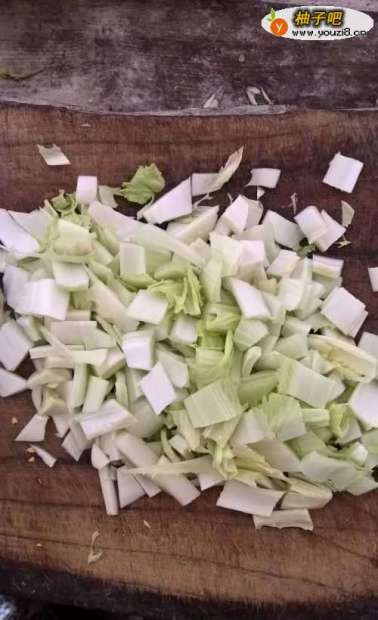2把白菜切成方块的形状。