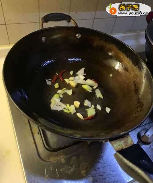 4倒点油,油热后放入葱蒜辣椒,放入西红柿块,加点盐