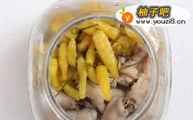 7再将冲洗过的鸡爪放入,在放入一层泡椒。