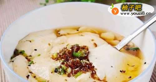 11用薄而平的大些的金属铲将豆腐脑铲入碗内,加上调料,吃吧!