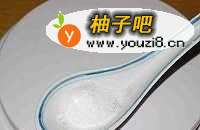 7事先准备好3克葡萄糖内脂,没有称,用汤匙量下,这是3克,大至可以堆起将汤匙底布满。最好还是准备一部电子称,网上买,街上量器店都有卖。宜家也有,但要贵很多。