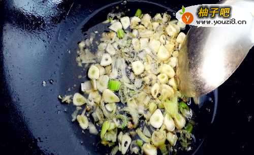 5另起锅,炒锅注油,倒入姜,蒜,葱炒香。
