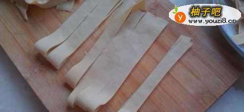4锅中注水烧热,倒入千张焯水,煮约1分钟至熟后捞出备用。