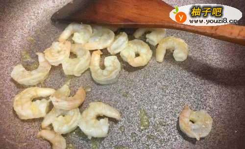 虾仁以米酒、香油、白胡椒粉、盐腌制20分钟起油锅,先将虾仁炒熟,捞出备用