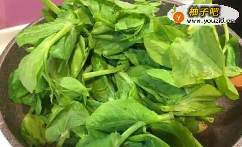 3姜丝香气释出后下豆苗,变软后加入少许盐调味