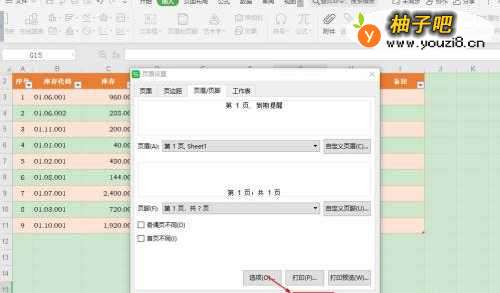 3在“页面设置”窗口,选择【页眉、页脚】设置框,在弹出的列表中选择样式;