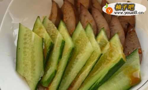 12把猪肝和黄瓜摆盘后浇入调好的辣汁即可