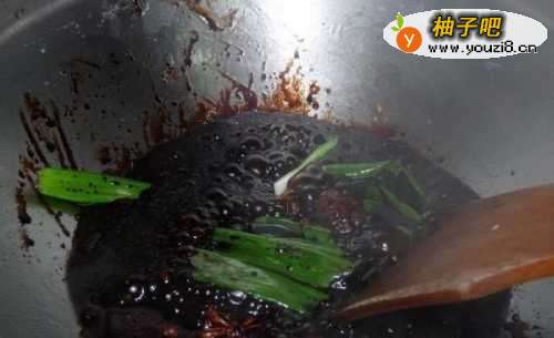 4倒入其他配料翻炒后,倒入老抽