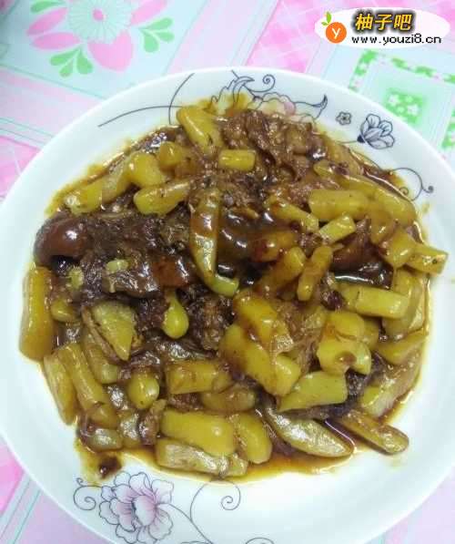 8等土豆炒熟,汤汁浸入土豆中后,就可以装盘了,香浓好吃。