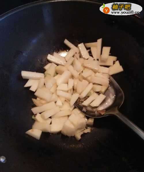 7烩土豆时,把土豆熬到软面,最好吃,所以要多炒一会儿。