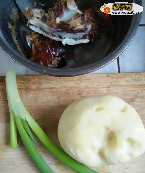 将土豆削去皮,葱剥干净,再准备一盆炖好的肘子。