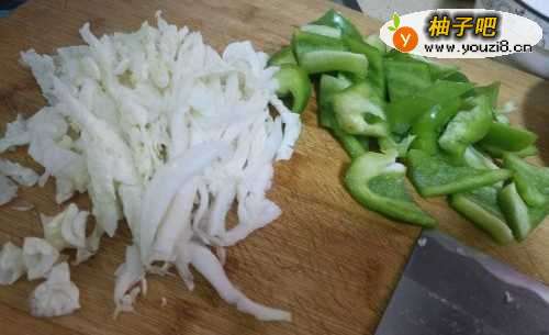 2蔬菜切好:白菜、青椒、油麦、生菜。