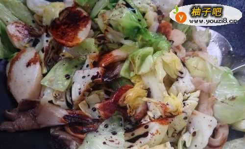 6然后,蔬菜快要熟时,放耗油,翻炒均匀即可关火。美味营养包菜杏鲍菇平菇就炒好。